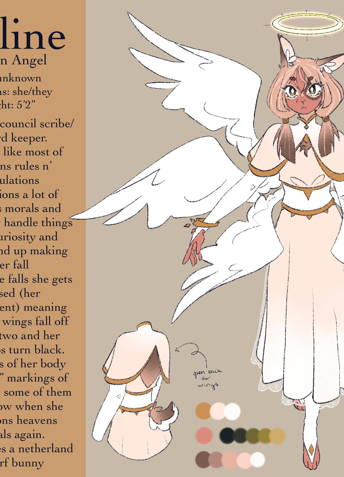This would be characters i make from scratch from your descriptions you give me. This will require a lot of communication to make sure your character is how you want them (: It will start off with just a front design and little important designs and descriptions. A color palette will also be added.> Canvas size is 2048 x 2048 px (350 dpi) [unless told otherwise]> Once finished you'll receive the full res image through preferred email with a very small signature.