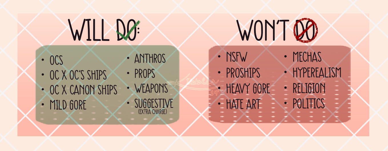 - If you have any problems regarding the terms, they can be discussed prior to paying for your commissioned work.If I have posted online with other artworks that isn't your commission, that doesn't mean that I'm neglecting your commission. These in between artworks are for relaxation reasons and breaks so I don't cause a burnout for your commission. I want to provide the BEST OF MY BEST for your commission that I can offer. Thank you so very much for understanding and reading all of this!! <3PROCEED IF YOU HAVE READ ALL OF THE TOS TYSM!